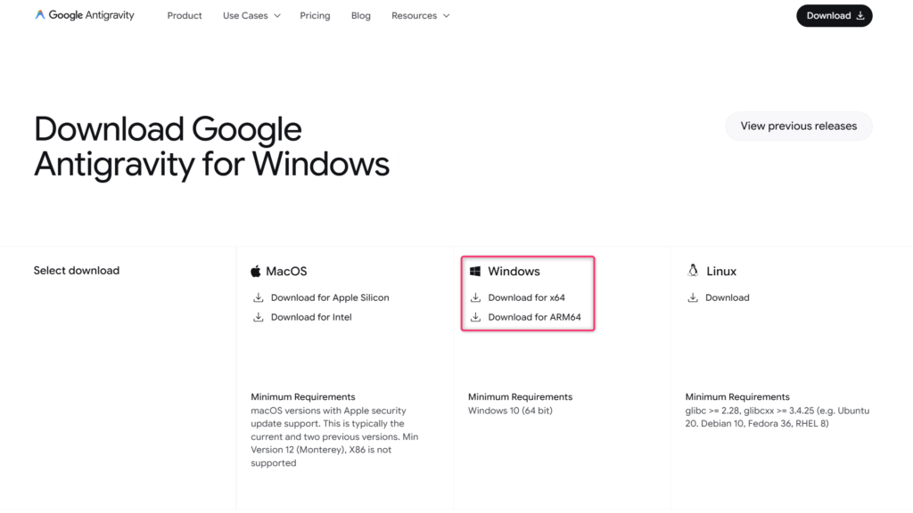 今回は、この中から開発の要となる「Antigravity」のセットアップを行います。