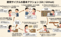 この記事では、作業の流れに沿って、GitHubのブラウザ画面で「どこに何が表示されるか」を順番に解説します。