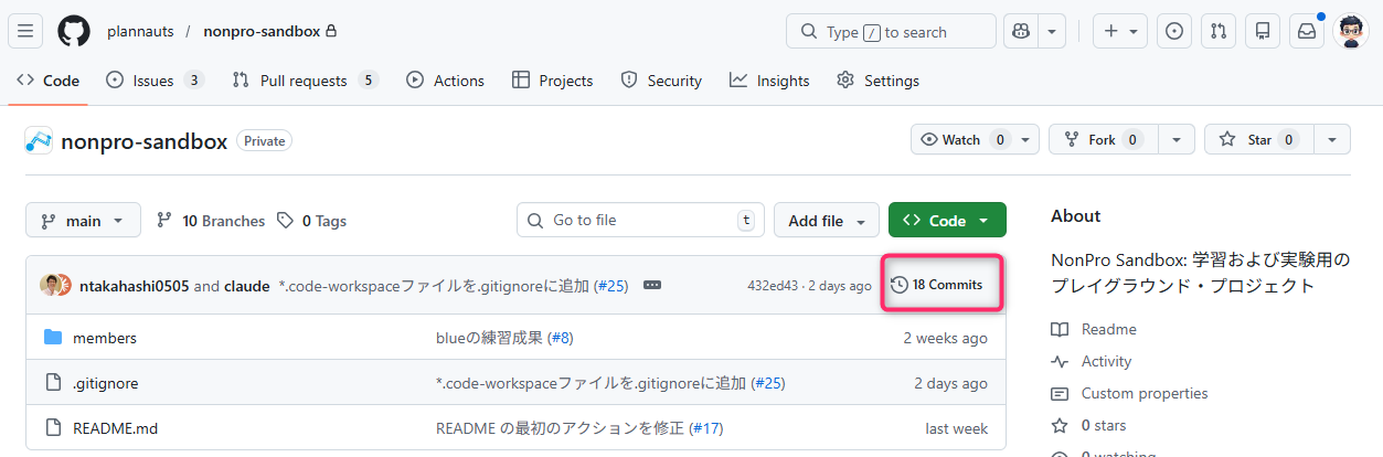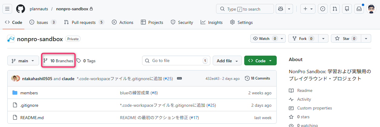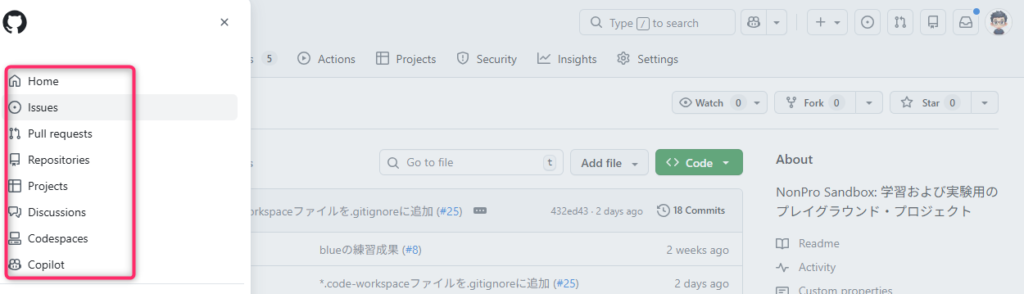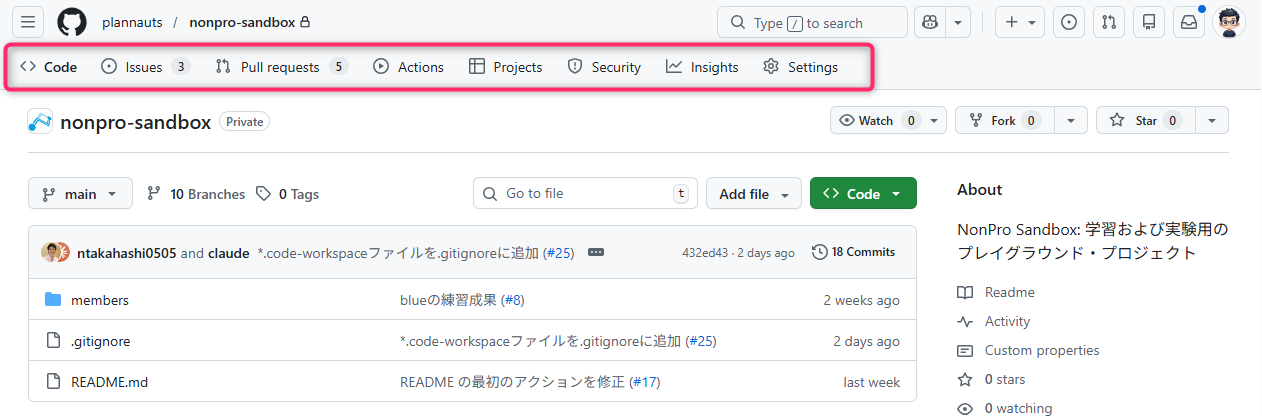 nonpro-sandbox というリポジトリなら、「ノンプロ研の砂場プロジェクト専用のフォルダ」という意味になります。