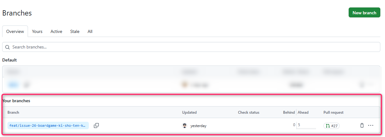 feat/issue-26-boardgame)を選択します。 - ボタンの表示が選んだブランチ名に変われば切り替え完了です。 ファイル一覧が更新されます。