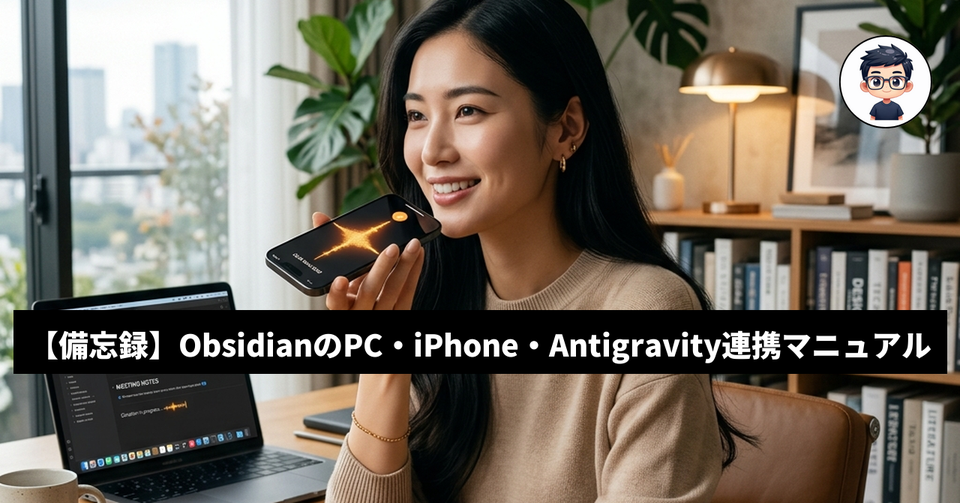 そんな中、「Obsidian(オブシディアン)を使うといいよ」という話を聞き、PC・iPhone・AI(Antigravity)を連携させる環境を構築することにしました。