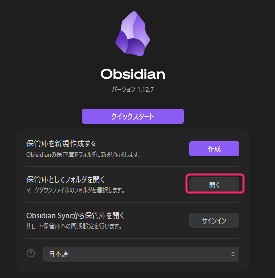 インストールが完了したら、メモを保存する場所(保管庫)を指定します。