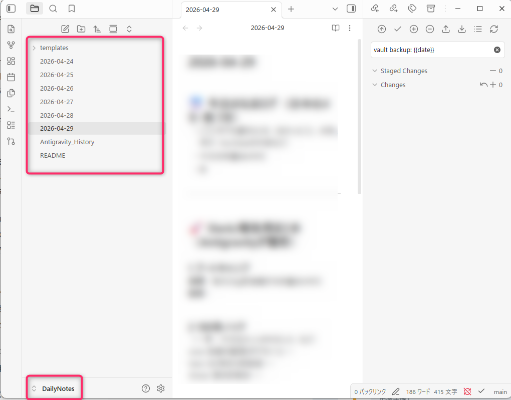 整理や分析はAIに任せればいいので、Obsidianには思ったことを書き殴るだけでOKです。
