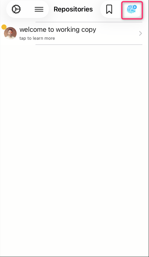 1.WorkingCopyアプリを開き、右上の 「+」 をタップします。