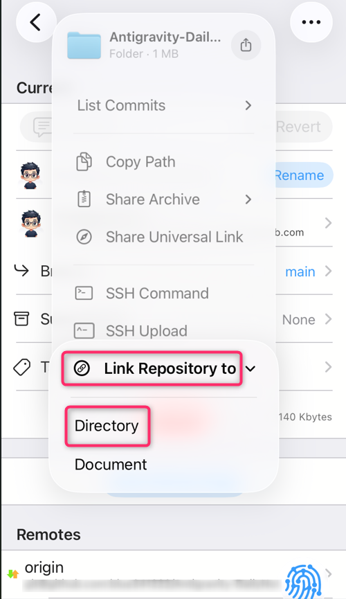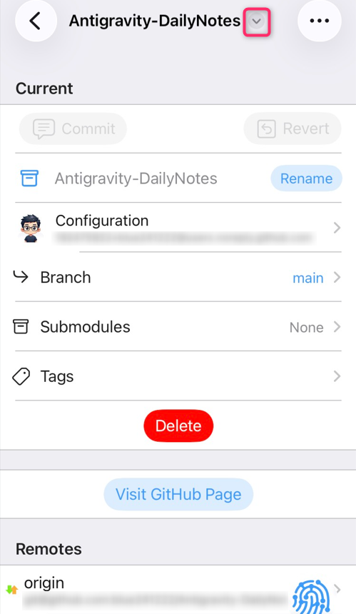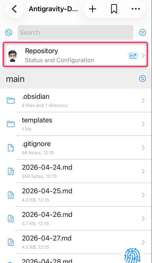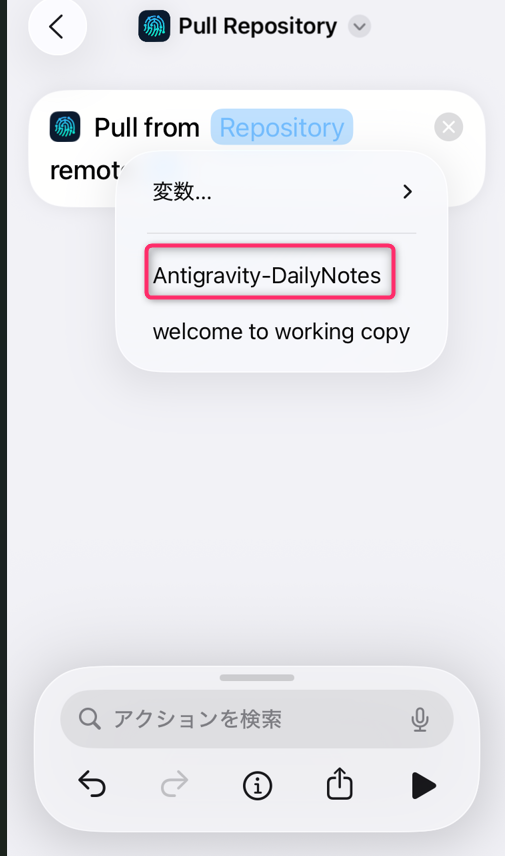 4.「Repository」をタップし、クローンしたリポジトリ(例:DailyNotes)を選択します。