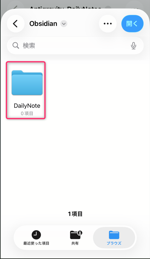 3.事前に作成した専用フォルダ(例:DailyNotes)を選択します。