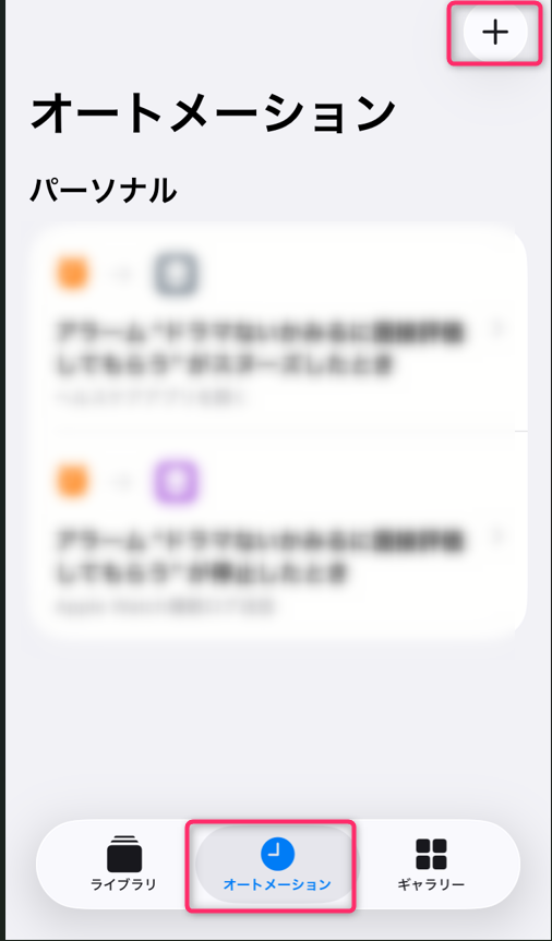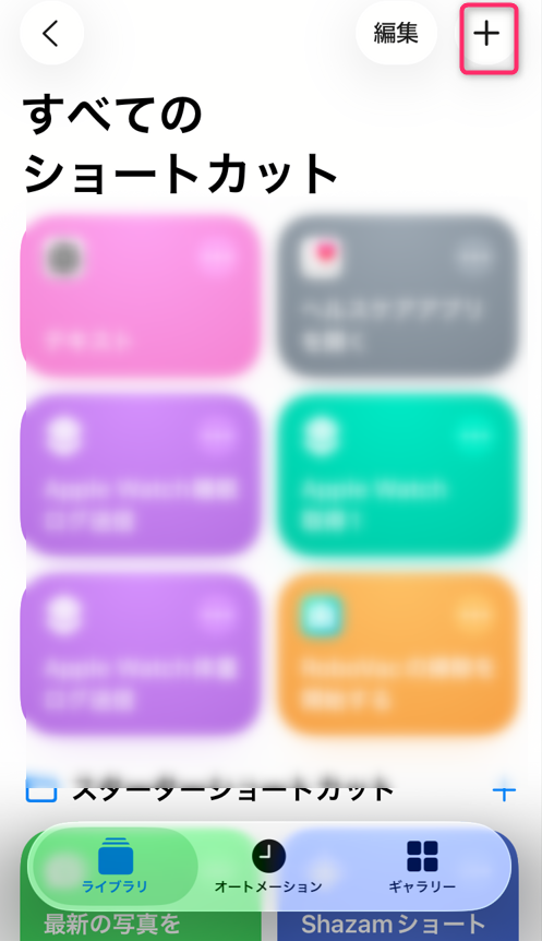 1.iPhoneの 「ショートカット」 アプリを開き、右上の 「+」 をタップします。