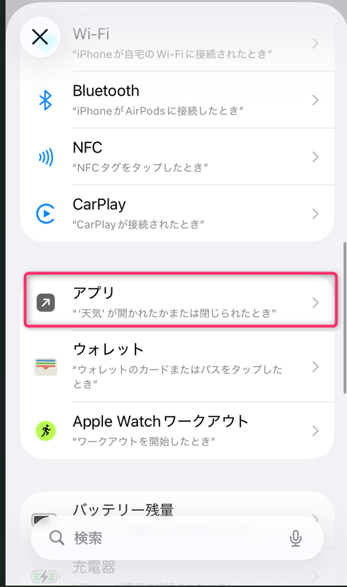 1.同様の方法で新しくオートメーションを作成し、「アプリ」 を選びます。