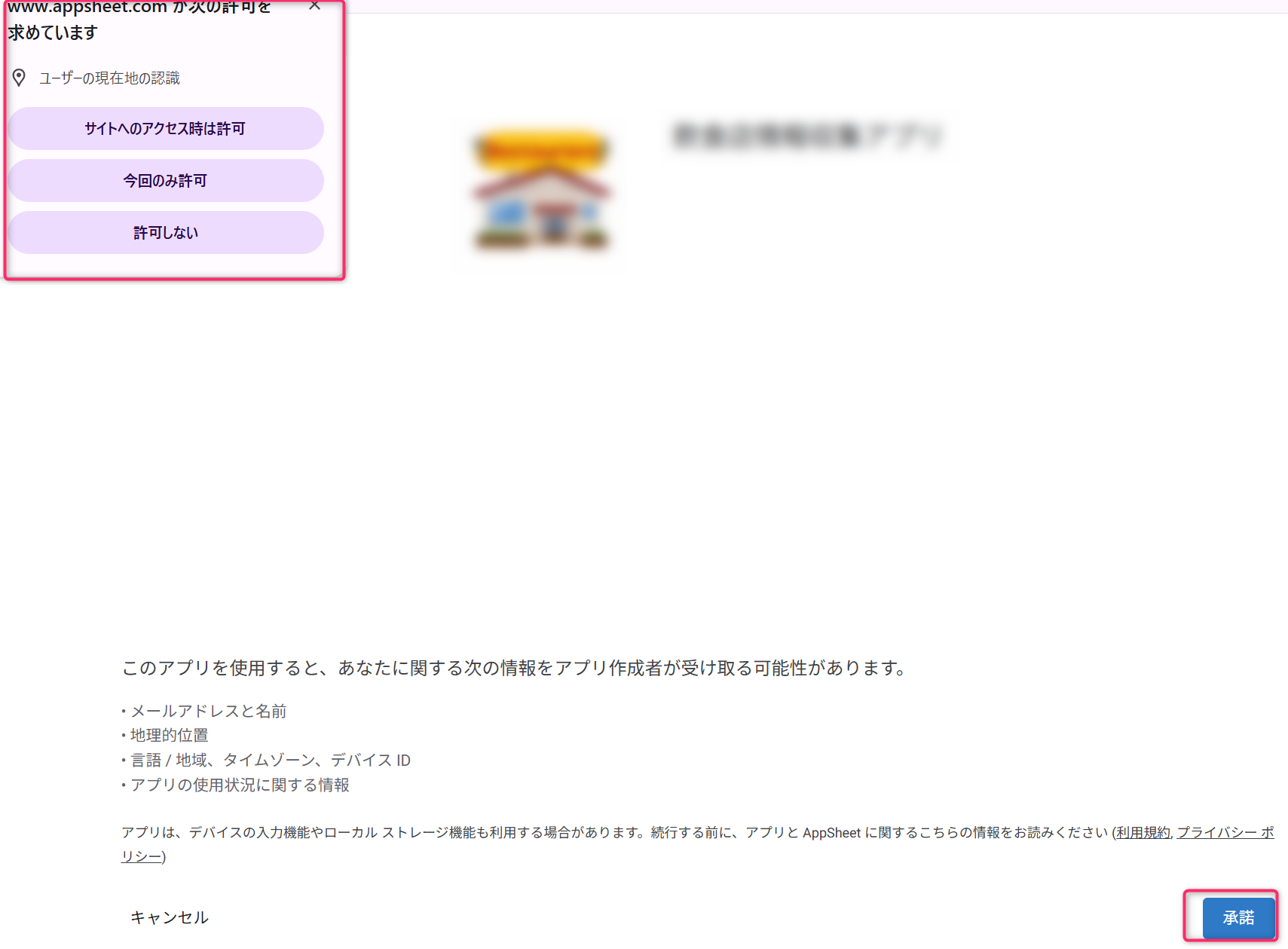 アプリの内容によっては位置情報を取得したり、時刻を取得する場合があります。問題なければ承諾してください