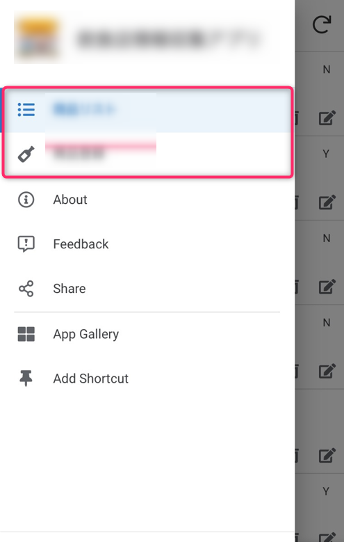 画面左上にある「三(ハンバーガーマーク)」をタップすると横からスッと開くメニューです。