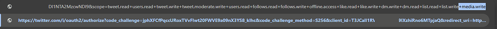 3. XのOAuth2認証画面が出てきたらURLの末尾に「+media/write」を付加する。「アプリにアクセス許可」をクリックする。