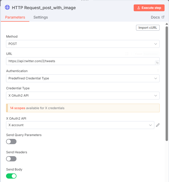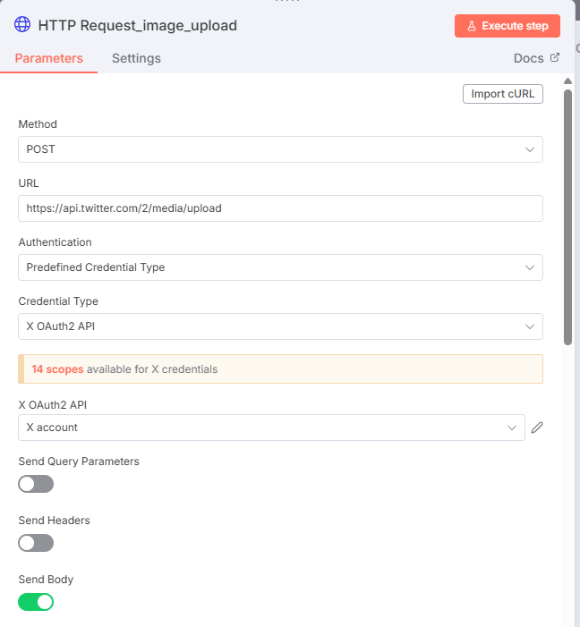 この処理を行う理由としてはn8n OAuth2API 認証情報にはまだ+media.writeが含まれていない為だそうです。