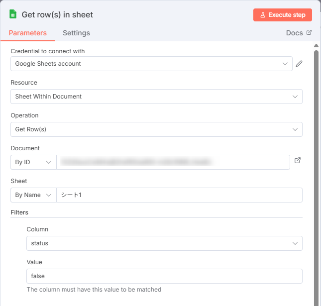 - Document:From list ドキュメント名を選択(By IDでも可)