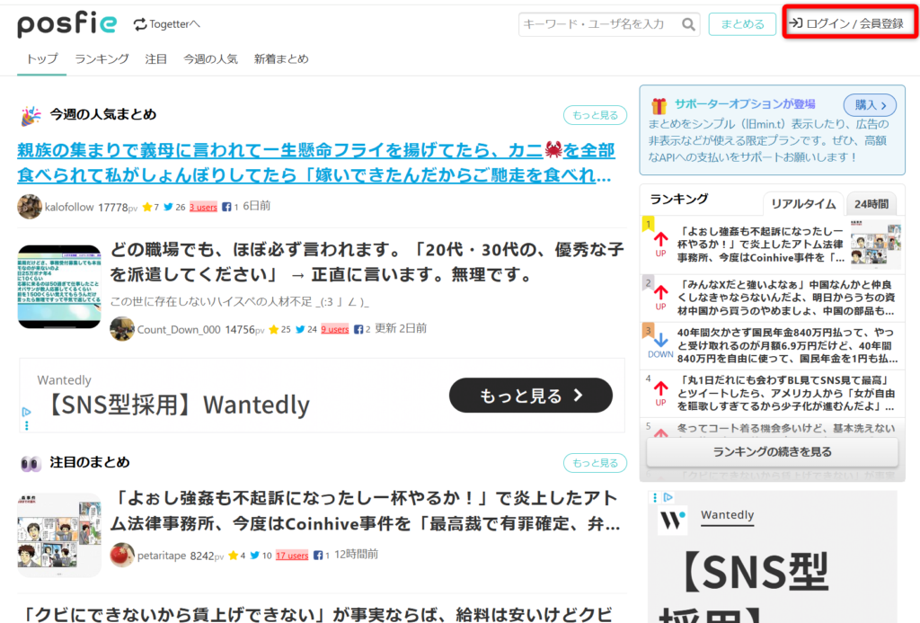 2.右上の ログイン/会員登録 を押す