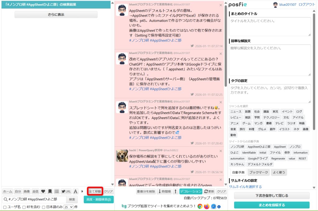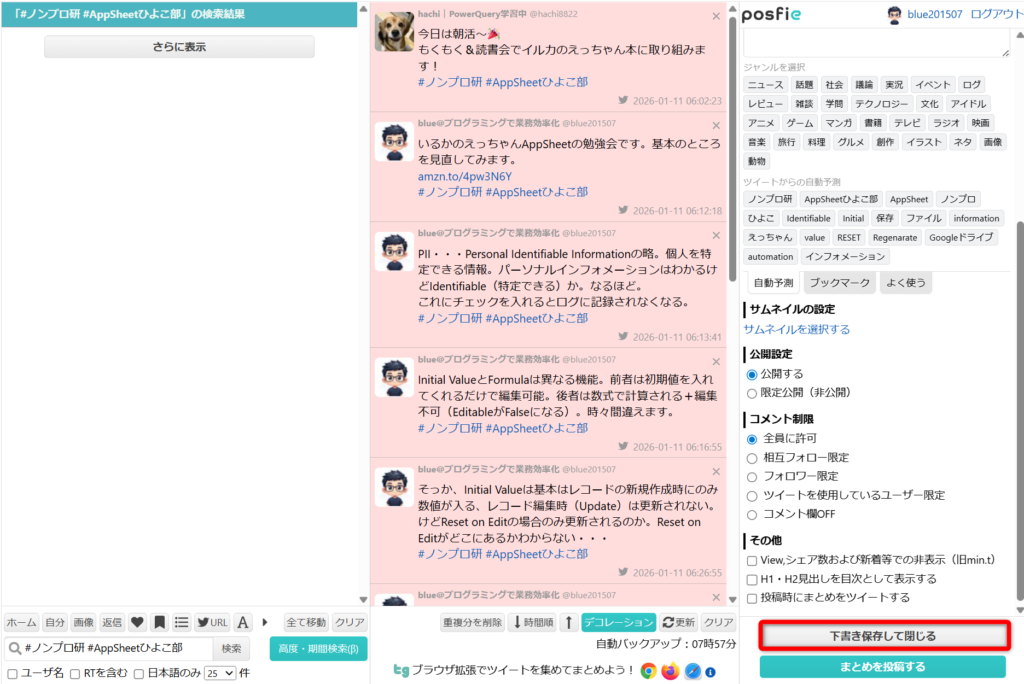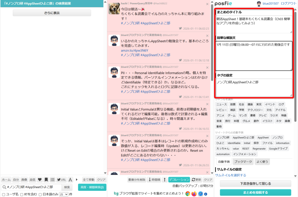- 検索して投稿を集めてまとめる