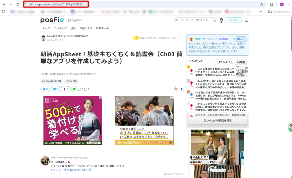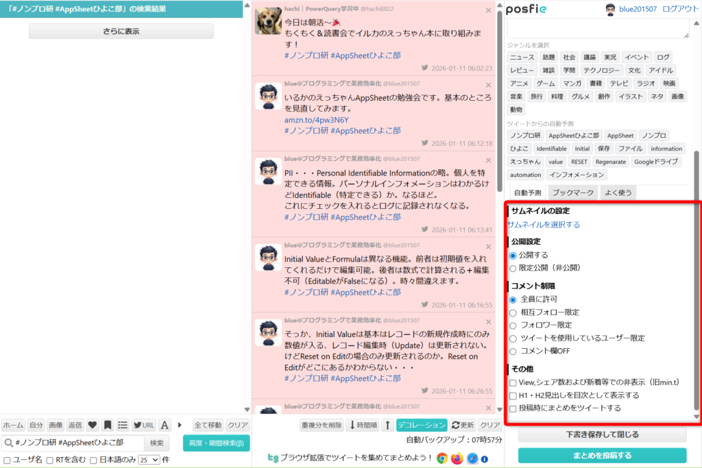 posfieは、X(旧Twitter)の投稿を集めて「まとめ記事」として公開できるサービスです。