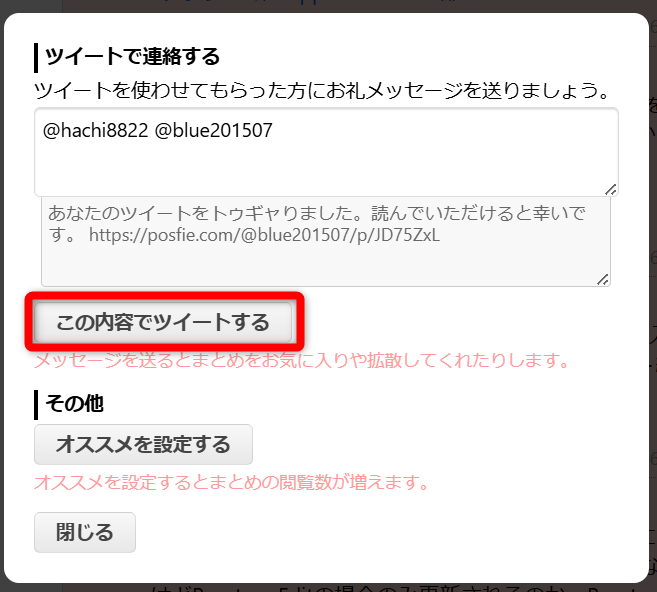 5.表示される画面で、内容を確認する(基本はこのままでOK)。「この内容でツイートする」をクリックする
