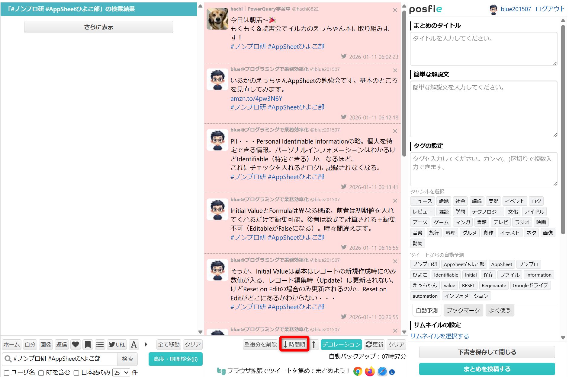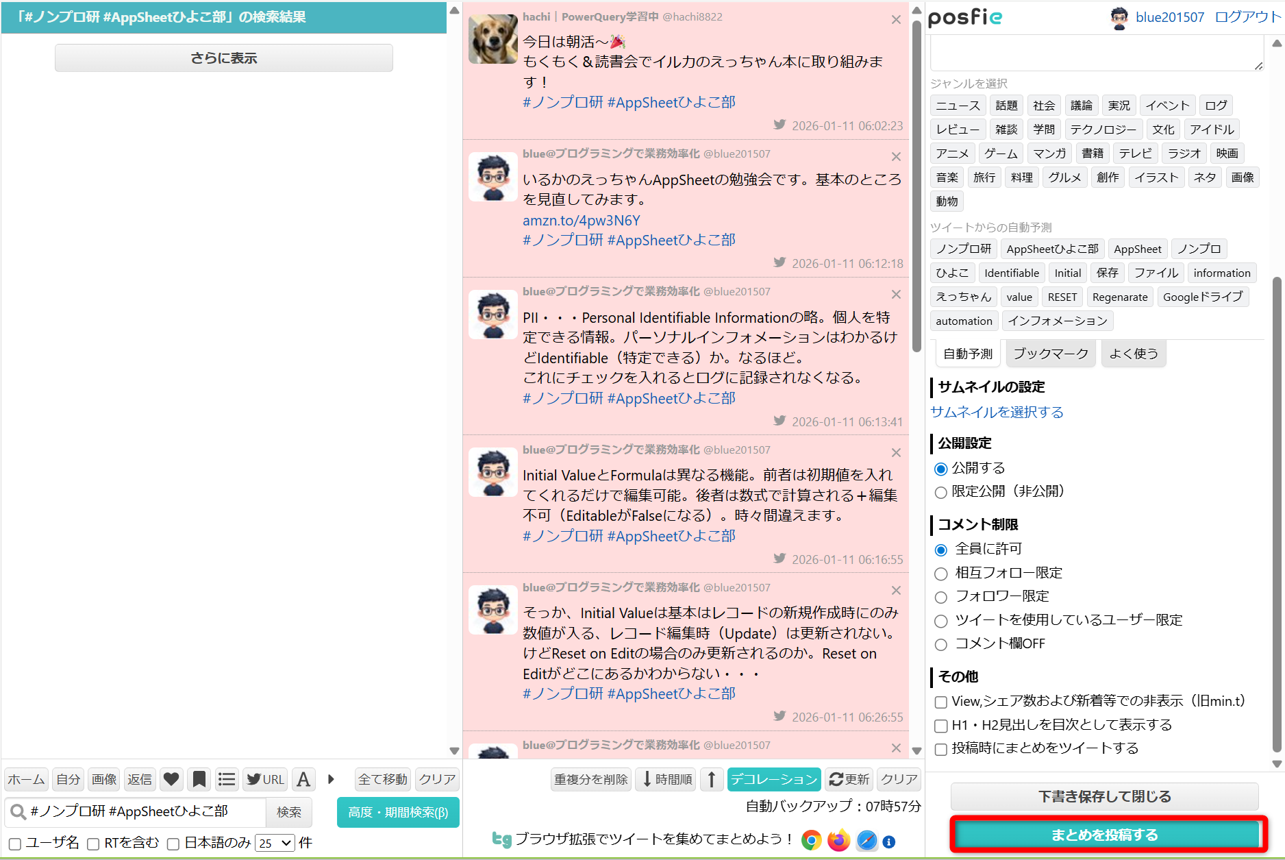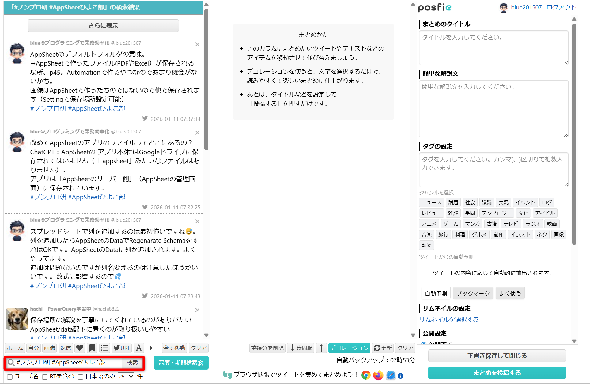 - 検索して投稿を集めてまとめる