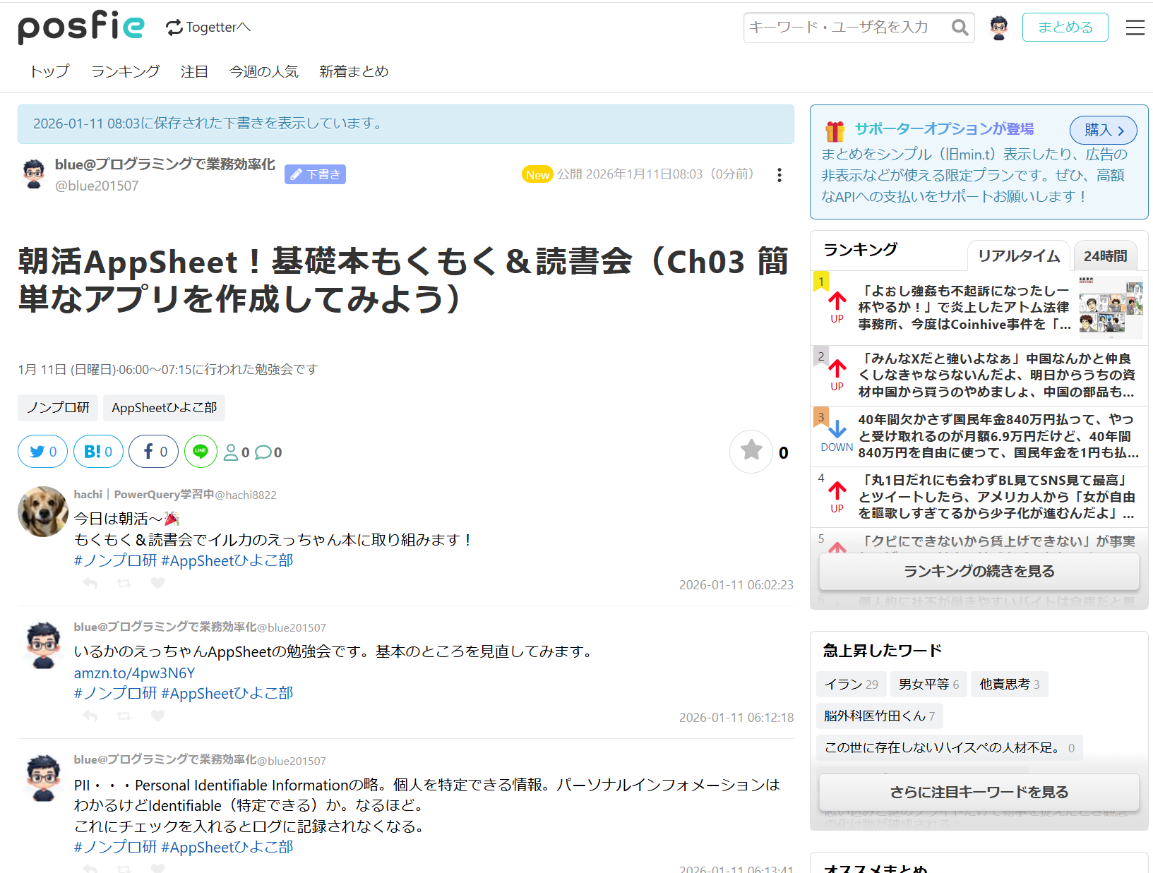 posfieは、X(旧Twitter)の投稿を集めて「まとめ記事」として公開できるサービスです。